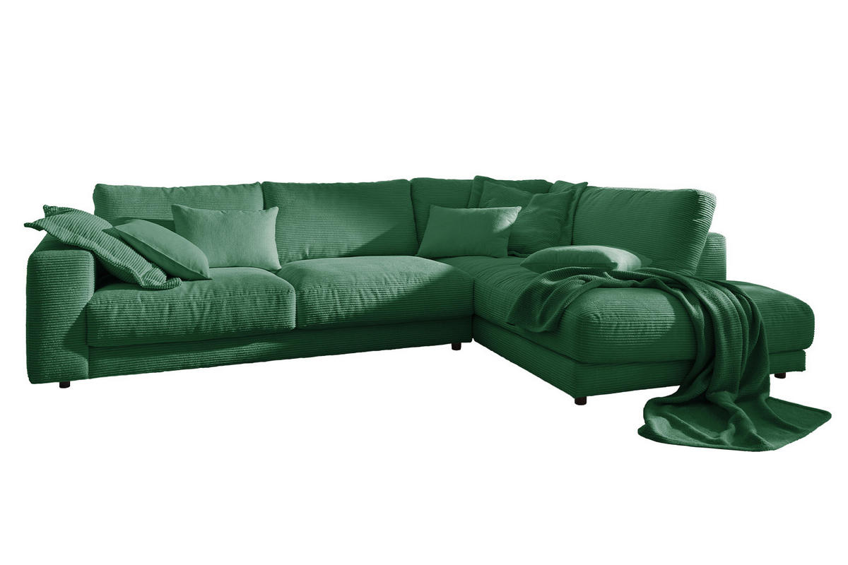 Das KAWOLA Ecksofa MADELINE besticht durch seinen hervorragenden Sitzkomfort, der durch die äußerst legere Polsterung zustande kommt und zum Verweilen und Entspannen einlädt. Die Polsterung passt sich der Körperform an; Sitzabdrücke sowie Wellenbildung der Bezüge sind warentypisch. Der Sitz besteht aus einer Unterfederung mit dauerelastischen Stahl-Wellenfedern und einer oberseitigen Abdeckung sowie losen Sitzkissen aus PUR-Schaum. Sitz und Rücken sind abgedeckt mit einem Inlett, welches befüllt ist mit hochwertigen Füllstoffen, die eine Beimischung von Federn enthalten. Der Bezug aus trendigem Cord-Stoff verleiht dem Big Sofa eine zeitlose Eleganz. Wenn Sie Ihrem Wohnzimmer einen außergewöhnlichen Anstrich verleihen wollen, ist das Sofa MADELINE definitiv das Richtige für Sie!