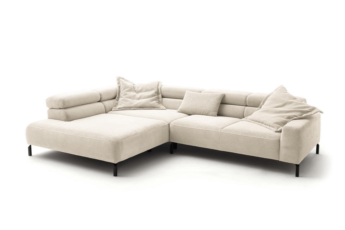 KAWOLA ECKSOFA MIT MOTORISCHEM SITZVORZUG DELIA Cremeweiß Cord