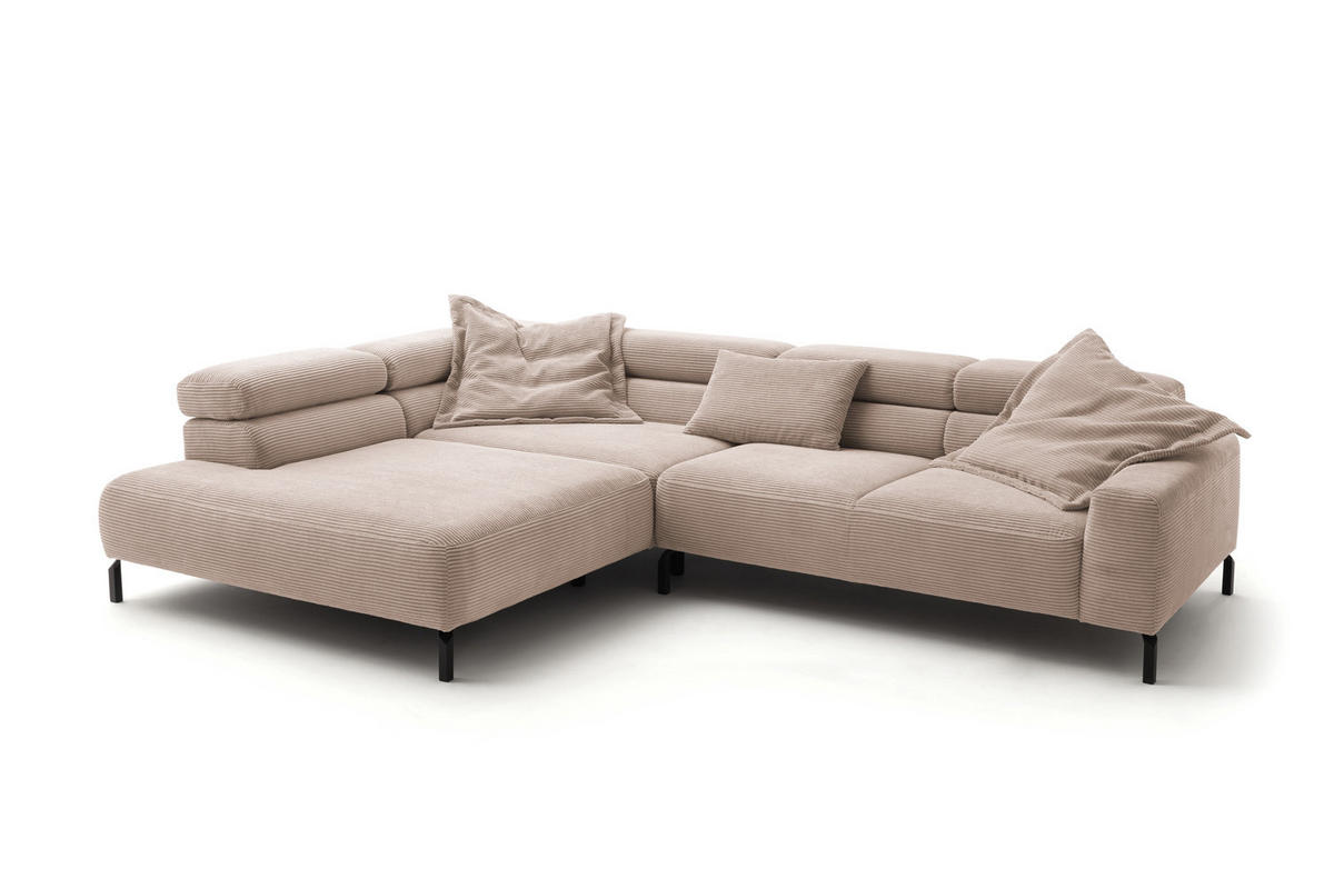 KAWOLA ECKSOFA MIT MOTORISCHEM SITZVORZUG DELIA Taupe Cord