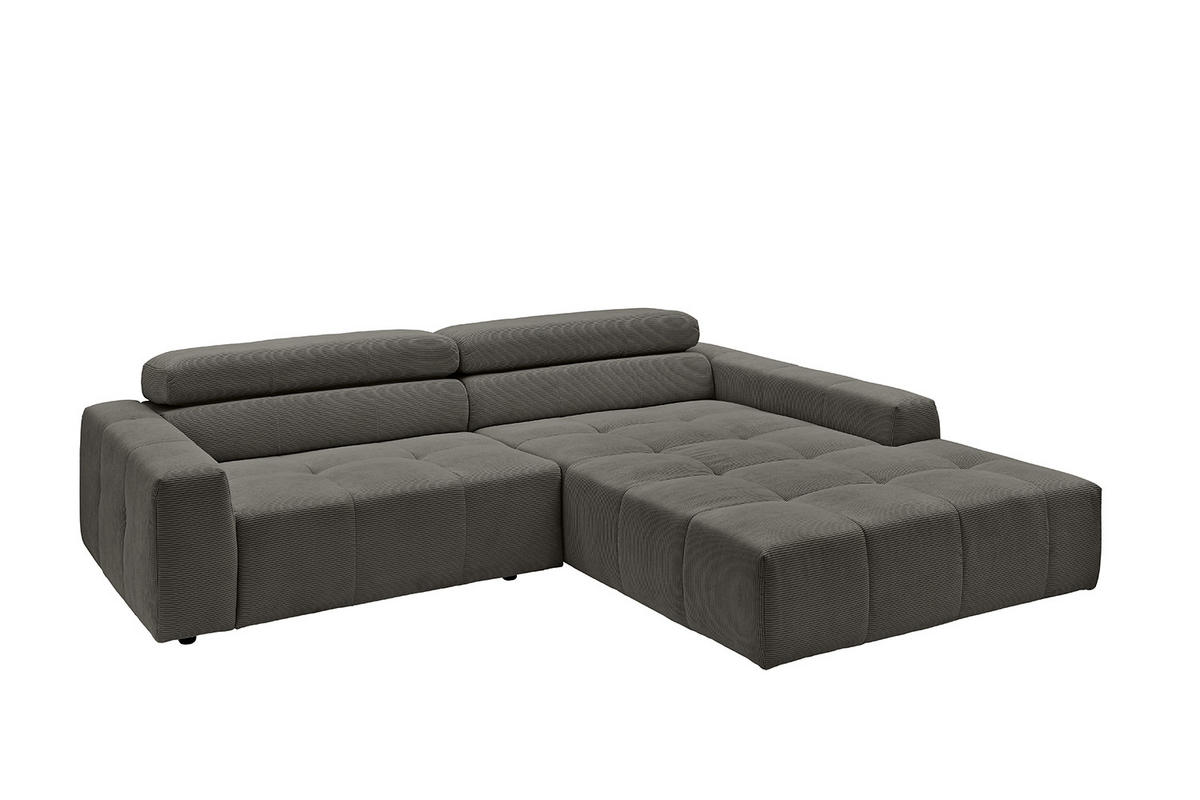 Entdecken Sie das stilvolle Ecksofa RENO von KAWOLA, das mit seinem hochwertigen Cordbezug und seiner raffinierten Kopfteilverstellung beeindruckt. Der Rundumbezug aus erstklassigem Cord verleiht diesem Ecksofa einen zeitlosen Charme und eine angenehme Haptik. Der ergonomisch geformte Rücken aus Schaumstoff sorgt für zusätzlichen Komfort, während die Wellenunterfederung und der PUR-Schaum im Sitzbereich ein angenehmes Sitzgefühl gewährleisten. Die innovative Kopfteilverstellung ermöglicht es Ihnen, die Kopfteile individuell zu neigen oder aufrecht zu stellen, um Ihre persönliche Entspannungsposition zu finden. Mit einem mittelfesten Sitzkomfort bietet das Ecksofa RENO die perfekte Kombination aus Stil und Gemütlichkeit. Erleben Sie pure Entspannung in Ihrem Wohnzimmer mit diesem bequemen und ansprechenden Möbelstück.