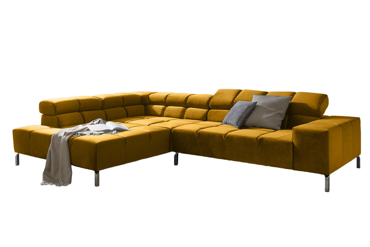 ECKSOFA MIT RELAXFUNKTION NELSON Gelb Velvet - Gelb/Silberfarben, Textil (321/116cm) - KAWOLAKAWOLA