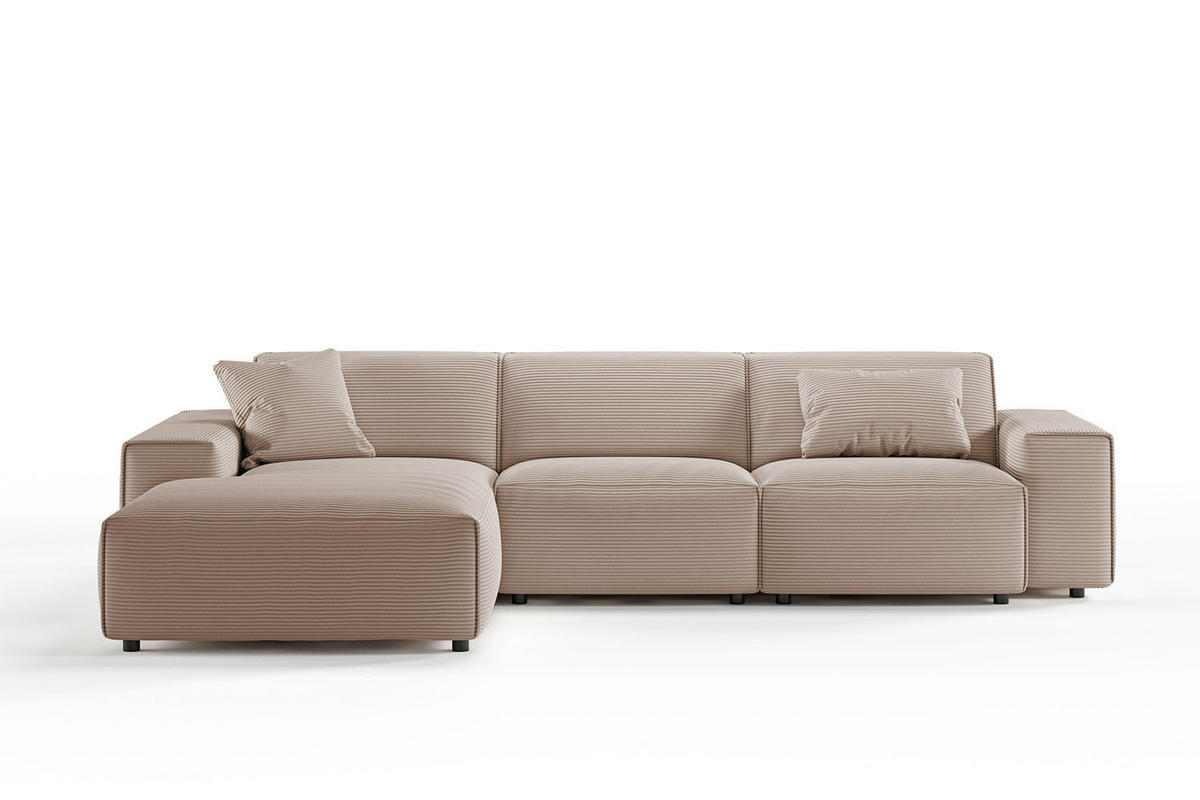 Entspannen Sie sich auf dem bequemen KAWOLA Ecksofa RANI mit seinem gemütlichen Cordbezug. Das robuste Gestell aus Massivholz sorgt für Stabilität und Langlebigkeit, während die weichen Sitzflächen und Rückenlehnen mit ihrer Polsterung aus Kaltschaum für optimalen Komfort sorgen. Der Bezug aus angesagtem Cord-Stoff ist nicht nur äußerst strapazierfähig, sondern verleiht dem Sofa auch einen modernen Look und eine angenehme Haptik. Dank des zeitlosen Designs lässt sich das Sofa problemlos in jedes Wohnambiente integrieren. Es ist die perfekte Wahl für jeden, der auf der Suche nach einem stilvollen und komfortablen Sofa für das Wohnzimmer ist. Machen Sie sich bereit, sich auf unserem Ecksofa RANI zurückzulehnen und das Leben zu genießen!