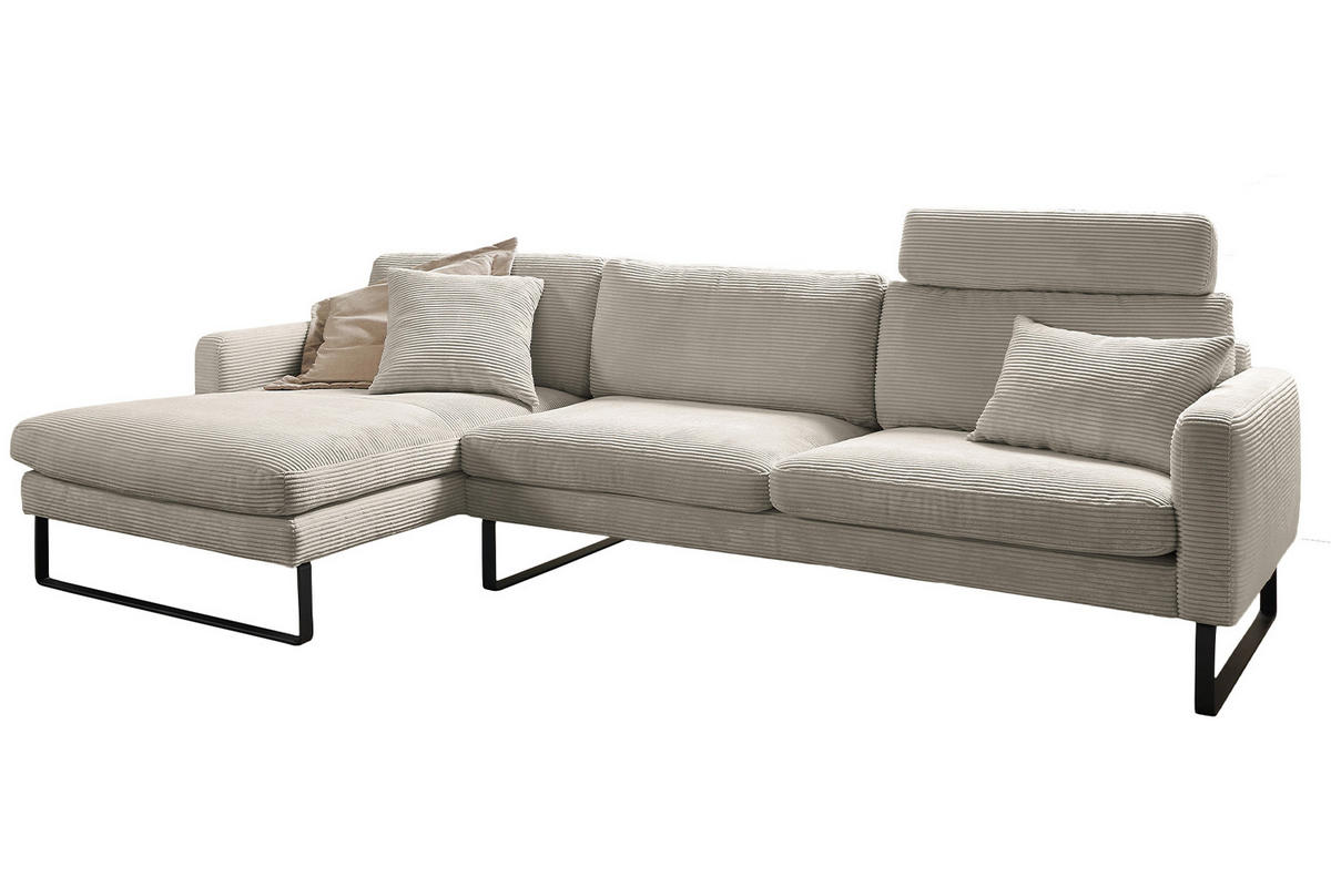 ECKSOFA RICARDA Granit Cord - Greige/Schwarz, Textil/Metall (298/154cm) - KAWOLAKAWOLA