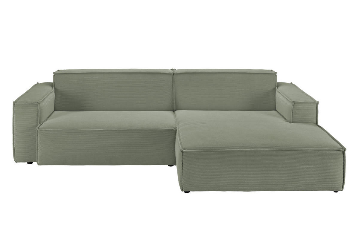 Das KAWOLA Ecksofa SAMU besticht durch seinen hervorragenden Sitzkomfort, der durch den äußerst weichen und legeren Polsteraufbau zustande kommt und zum Verweilen und Entspannen einlädt. Die Polsterung passt sich der Körperform an; Sitzabdrücke sowie Wellenbildung der Bezüge sind warentypisch. Der Bezug aus Feincord ist strapazierfähig, langlebig und sorgt für ein angenehmes Sitzgefühl. Der Stoff verfügt über mehr Rippen und somit eine feinere Struktur als normaler Cord, was ihm eine edlere Optik sowie zeitlose Eleganz verleiht. So fügt sich das Sofa fügt nahtlos in jede Umgebung ein und macht auch frei im Raum stehend eine gute Figur. Wenn Sie Ihrem Wohnzimmer einen außergewöhnlichen Anstrich verleihen wollen, ist das Sofa SAMU definitiv das Richtige für Sie!