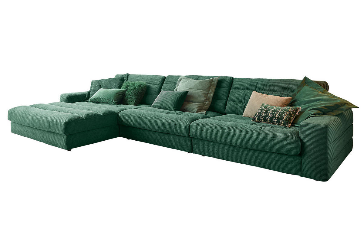 KAWOLA ECKSOFA XL LANA Smaragdgrün Cord