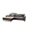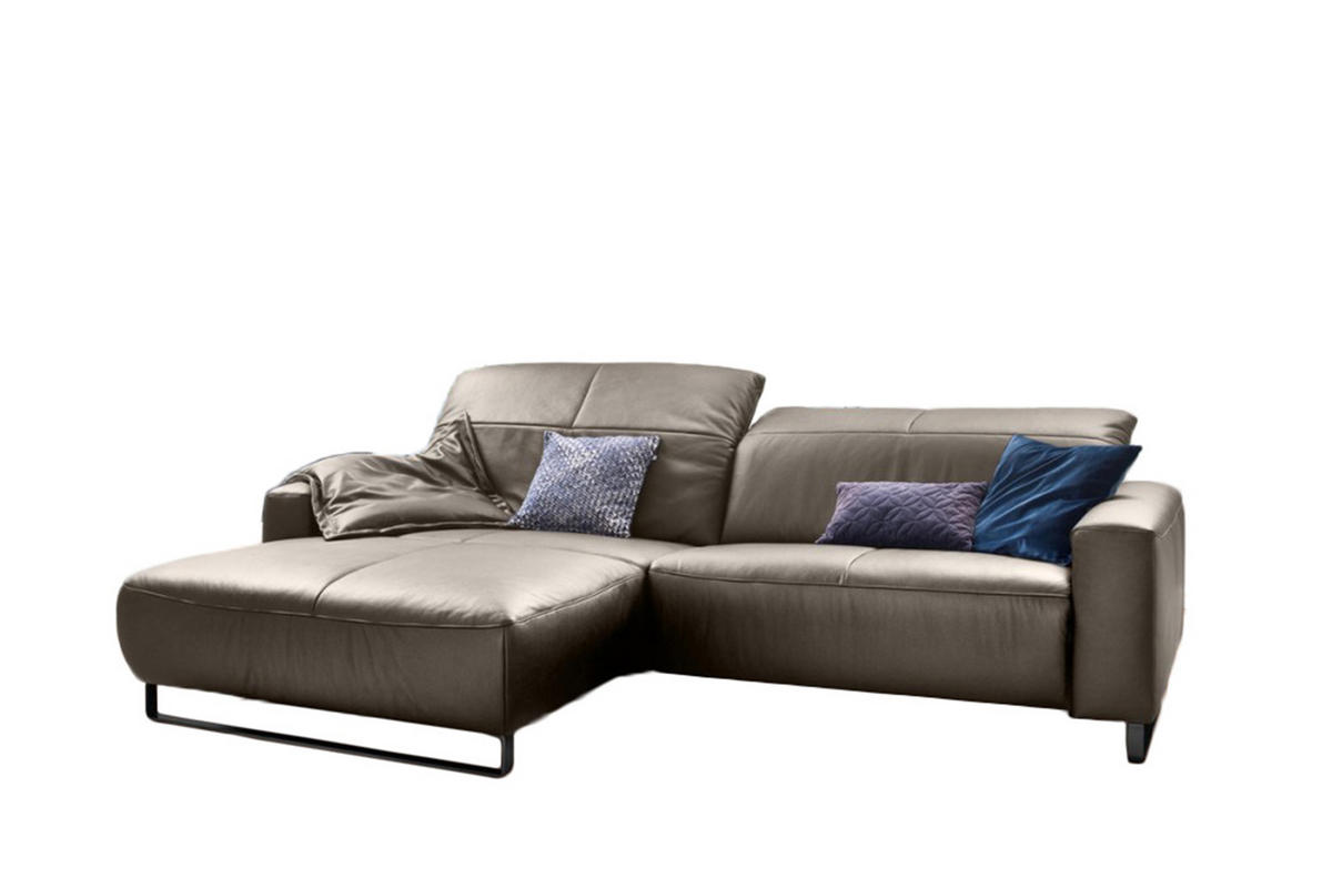 Die hier ausgewählte Bezugsfarbe Life-line bisquit passt hervorragend zur Lederauswahl und zum Design des Ledersofas.
