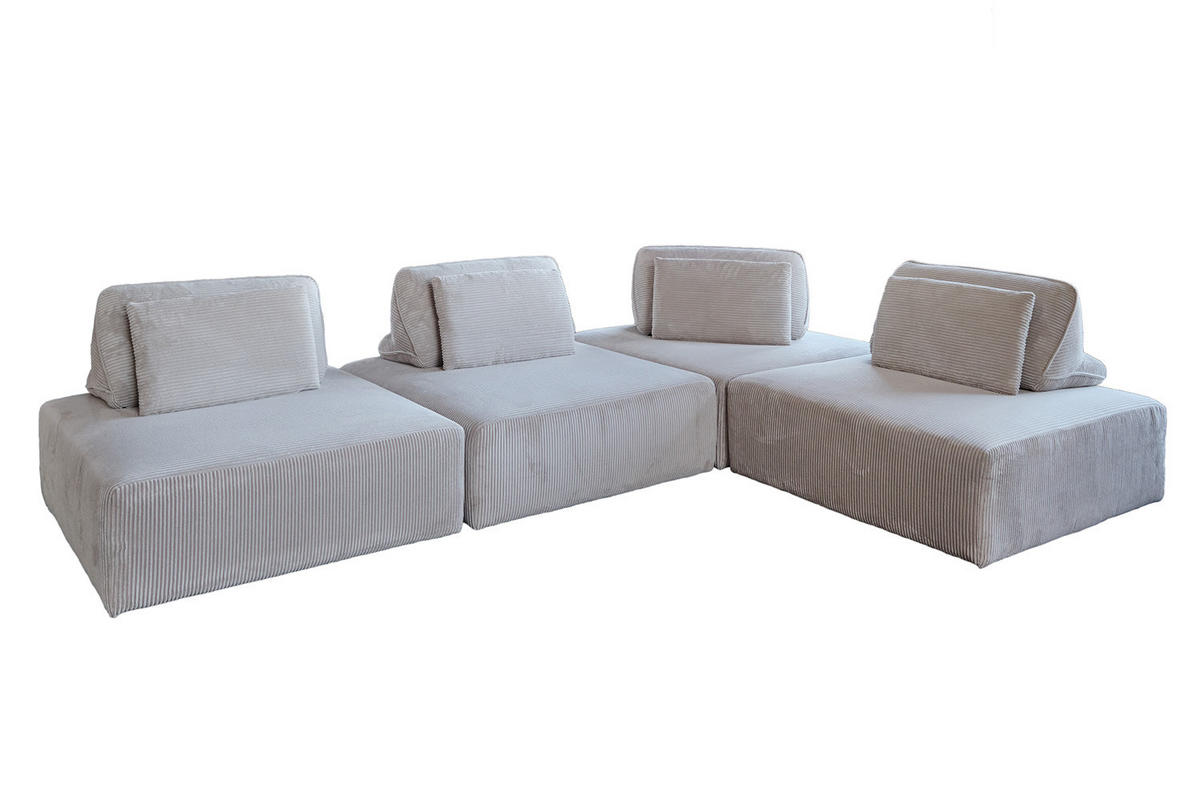 Das Modulsofa WIOLO SOFT im skandinavischen Stil ist der neue Stern am KAWOLA-Himmel - und dabei so einzigartig wie Ihr Zuhause! Die Serie WIOLO SOFT ist ein Upgrade unserer Bestseller WIOLO und zeichnet sich durch eine wesentlich weichere Polsterung aus, die höchsten Sitzkomfort garantiert. Der besonders weiche Bezug aus Cord ist außerdem abziehbar und waschbar. Als Füße wurden hier Gleiter gewählt, die den Eindruck erwecken, als würde das Sofa knapp über dem Boden schweben. Enthalten sind auch vier Rückenkissen, die als ebenso stabile wie bequeme Rückenlehnen fungieren.