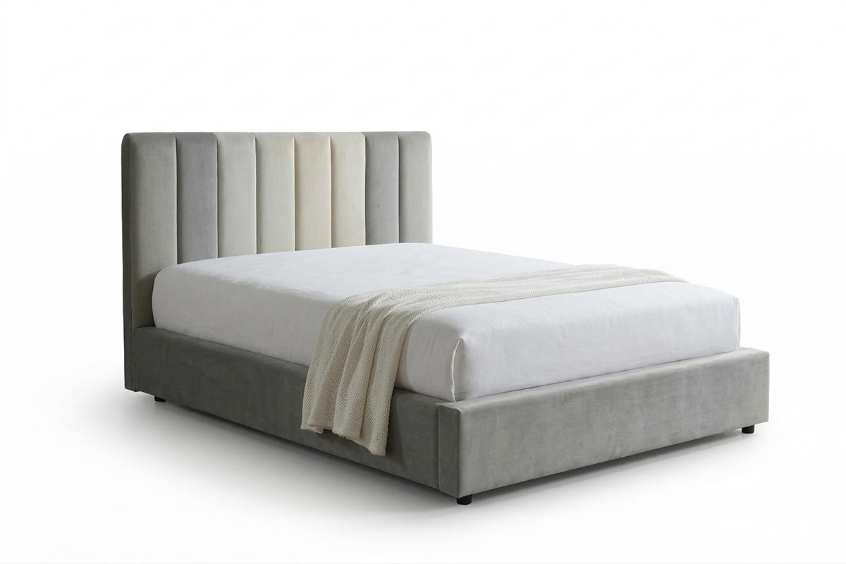Das Polsterbett CATTURA von KAWOLA überzeugt durch seine moderne Eleganz und eine stilvolle Gestaltung, die jedem Schlafzimmer eine besondere Atmosphäre verleiht. Charakteristisch ist das großzügige, vertikal gesteppte Kopfteil, das in harmonisch abgestuften Grautönen gehalten ist. Durch dieses dezente Farbspiel entsteht eine edle Tiefenwirkung, die dem Bett eine ruhige, zugleich ausdrucksstarke Präsenz verleiht.