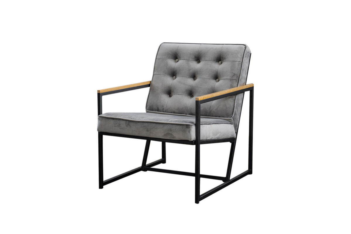 Trotz der geradlinigen Silhouette des Stuhls strahlt er durch das Sitz- und Rückenpolster welche mit mit anschmiegsamem, samtartigem Stoff bezogen wurden Komofort und Gemütlichkeit aus.