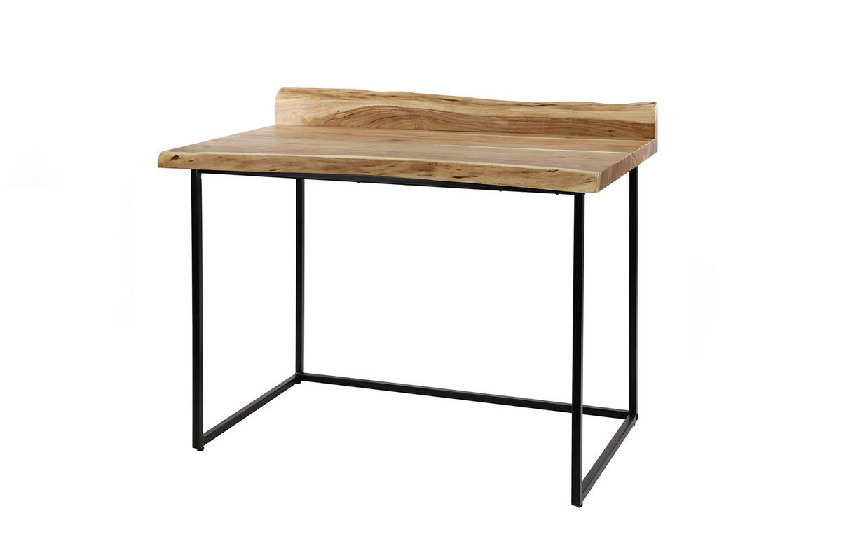 Der Schreibtisch FERHA von KAWOLA verbindet natürliche Kraft mit minimalistischem Industrie-Design. Gefertigt aus massivem Akazienholz, beeindruckt er mit seiner authentischen Naturkante und einer warmen Maserung, die durch einen matten, transparenten Lack perfekt zur Geltung kommt. Das robuste und doch filigrane Gestell aus schwarz pulverbeschichtetem Metall unterstreicht seinen modernen Charakter und sorgt für höchste Stabilität. Mit einer Plattentiefe von 60 cm bietet FERHA großzügig Platz für Ihre Arbeit oder Kreativität. Seine vielseitige Natur erlaubt es, ihn ebenso elegant als stilvollen Frisiertisch zu nutzen. Als Teil der Edge-Serie ist FERHA ein Statement für naturnahes, funktionales Design.
