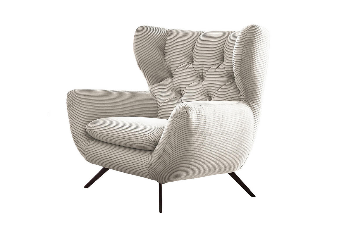Zu der ausgefallenen Form des Sessel CHARME wurde der Bezug hier in Cord gewählt und erscheint leicht samtig.