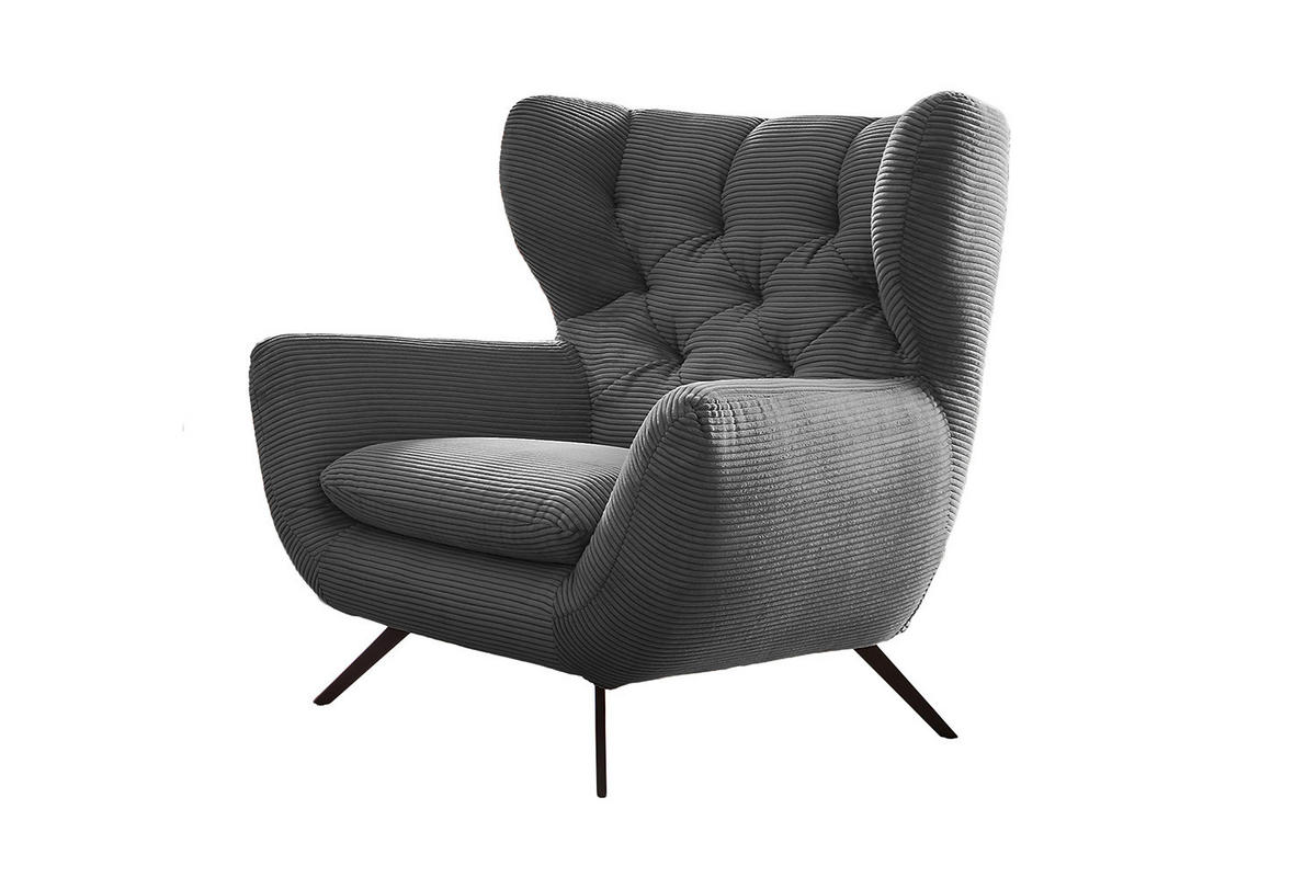 Zu der ausgefallenen Form des Sessel CHARME wurde der Bezug hier in Cord gewählt und erscheint leicht samtig.