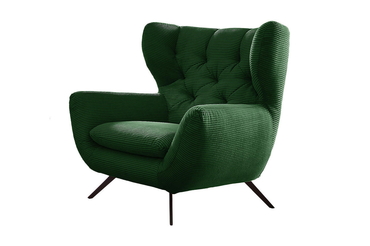Zu der ausgefallenen Form des Sessel CHARME wurde der Bezug hier in Cord gewählt.