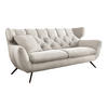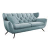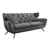 Der Stil des Sofa Charme erinnert an die sechziger Jahre: Der Rücken wurde aufwendig abgesteppt ohne Knöpfe; die Rückenlehne wurde an den beiden Seiten leicht nach vorne gewölbt und erinnert an die Form eines Ohrensessels; die Füße aus Metall sind leicht ausgestellt.