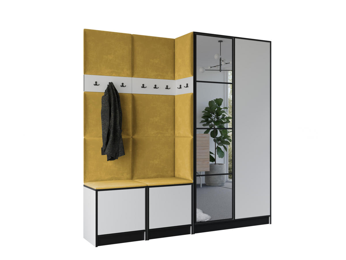 Kier Furniture GARDEROBENSCHRANK EDEN 21 mit Spiegel - Weiß - Stoff Gelb
