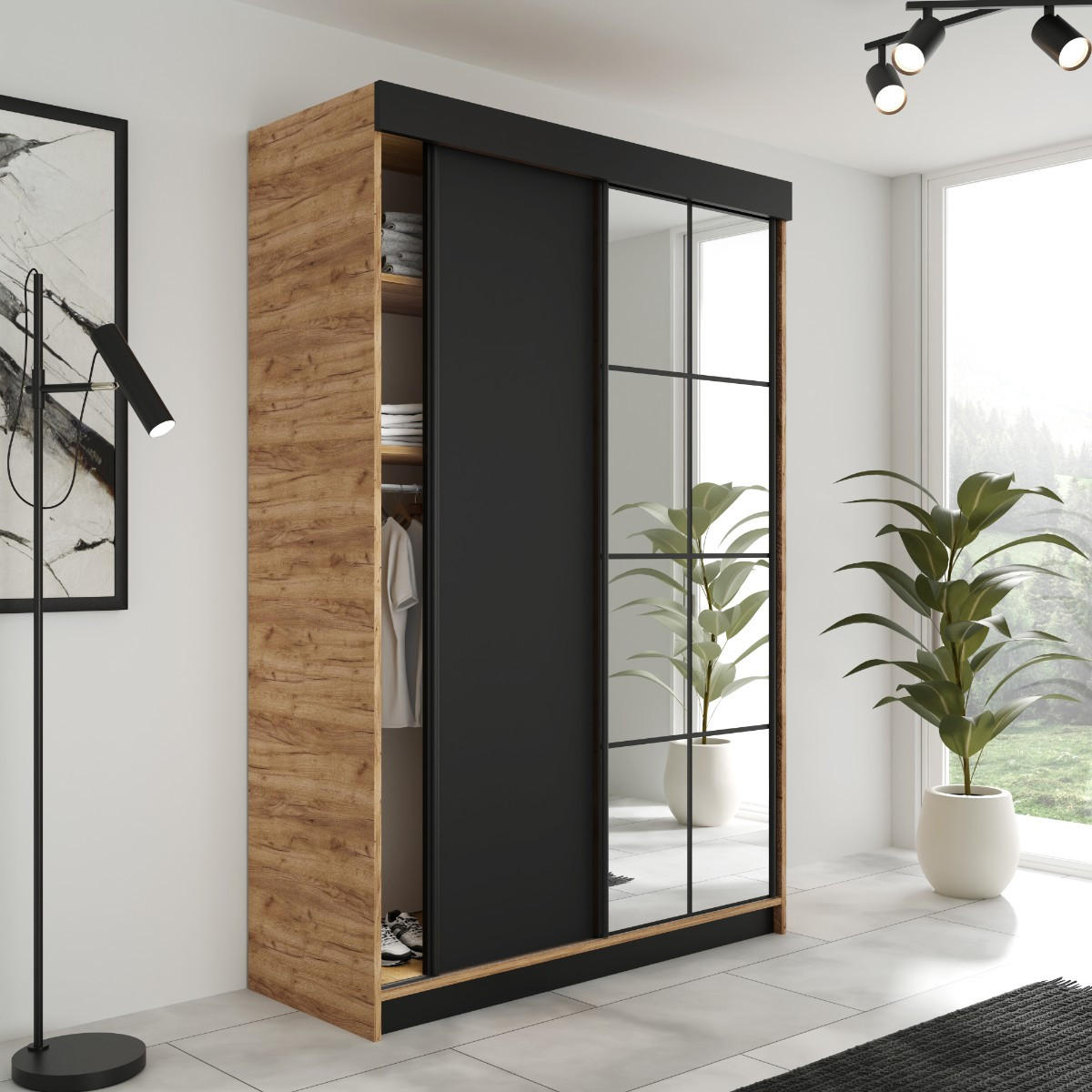 Kier Furniture SCHIEBETÜRENSCHRANK LAMARO 167x205x59cm - Eiche Kraft Gold & Schwarz