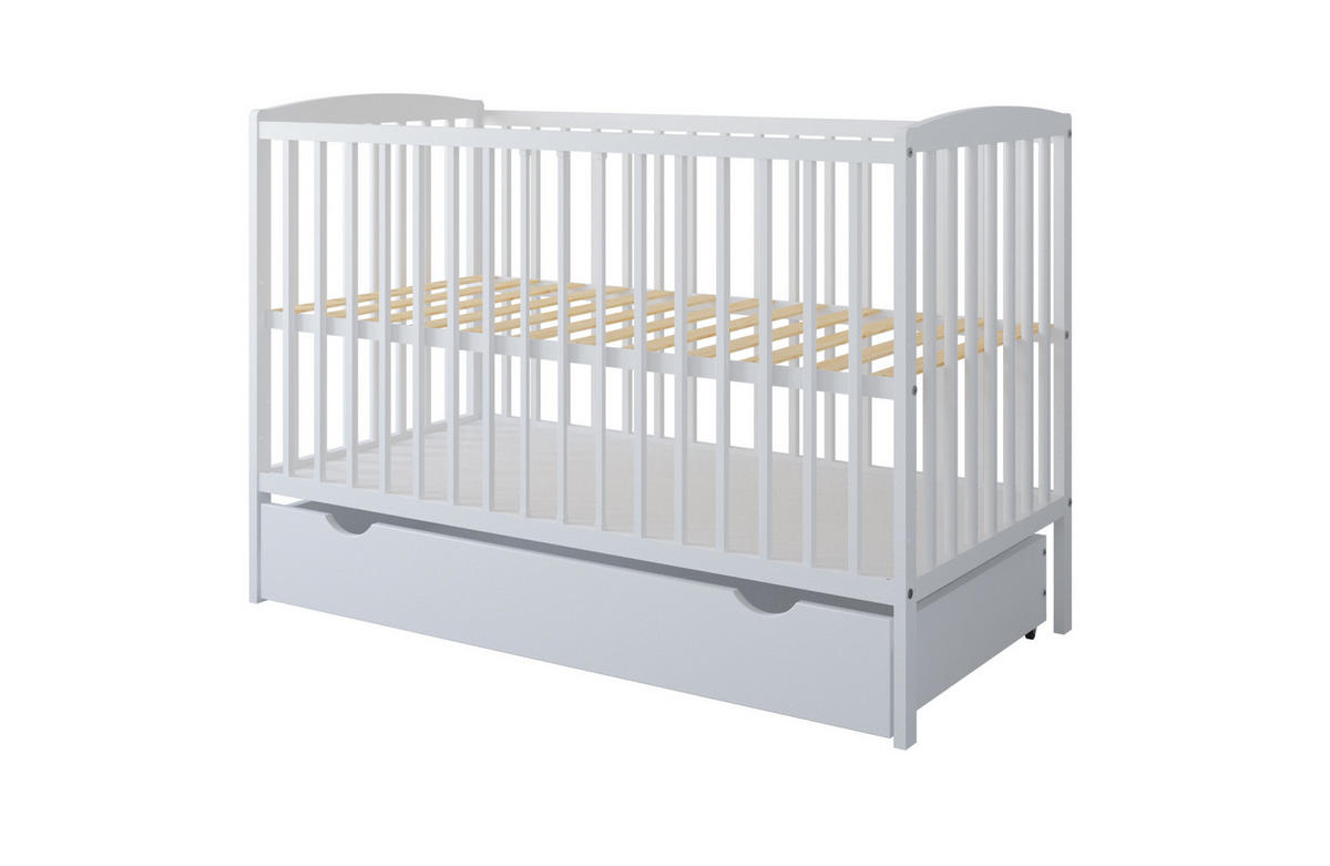 Babybett aus hochwertigem Kiefernholz. Es zeichnet sich durch ein schlichtes und klassisches Design aus.