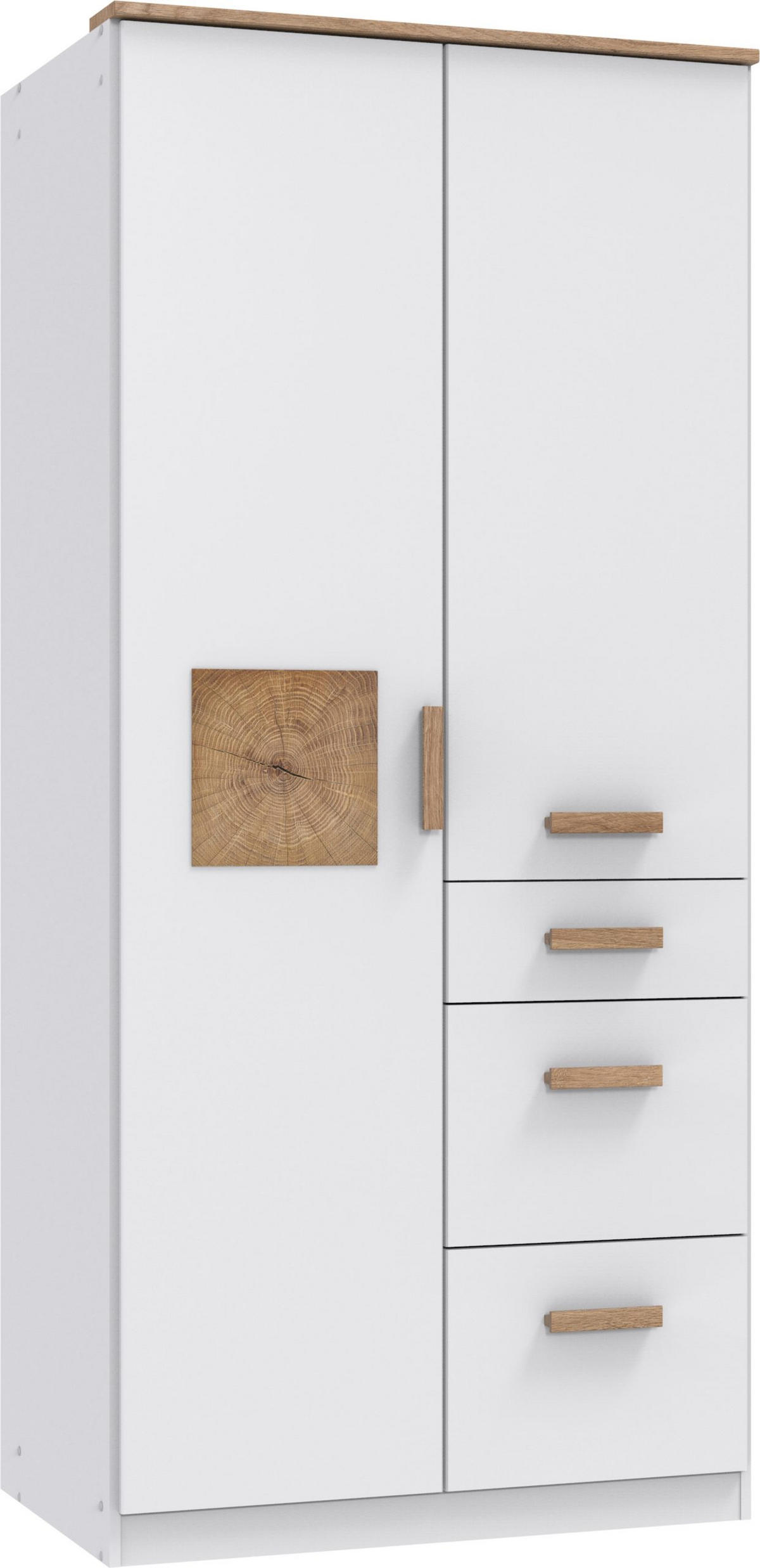 Kleiderschrank Gotland Weiß mit Plankeneiche & Hirnholz – 2- oder 3-türig wählbar