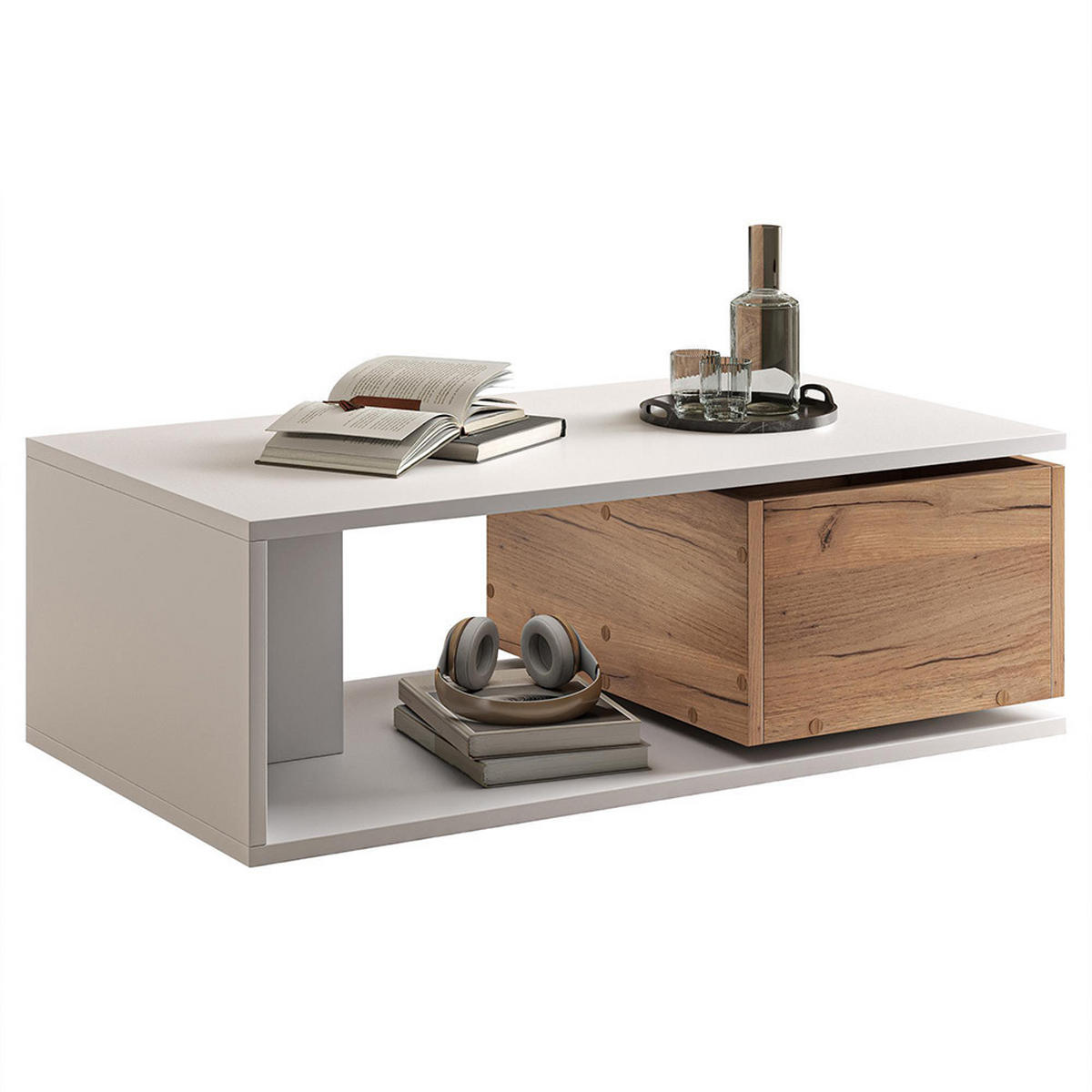 Die Schublade dieses Couchtisches lässt sich um 360 Grad drehen. Ihr raffiniertes Design erhöht nicht nur die Benutzerfreundlichkeit, sondern macht ihn auch zu einem echten Hingucker.