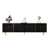 - Hochglanz-Oberfläche:Die weiße Hochglanz-Oberfläche kombiniert mit goldenen Akzenten schafft eine einfache, aber elegante Ästhetik, die den Stil des Raumes aufwertet.