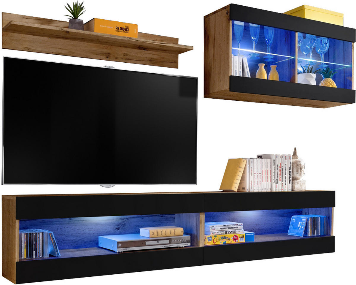 - PLATZ FÜR ALLES: Eines der Elemente ist der TV-Schrank, in dem ein Fernseher, ein Plattenspieler, Lautsprecher und andere Audiogeräte Platz finden. Es gibt auch Platz für Schallplatten oder CDs.