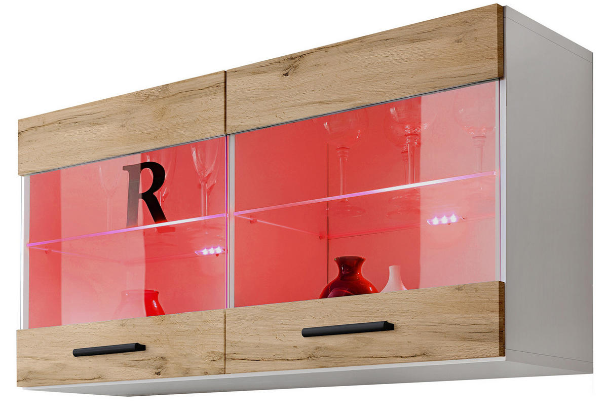 Mit der Vitrine Savona bringen Sie Ordnung in Ihre Küche, Ihr Wohnzimmer oder Ihr Schlafzimmer. Sie bietet Platz für Porzellan, Gläser, Kaffeeservices oder Souvenirs. Dank ihres schlichten, geometrischen Designs ist sie ein zeitloses Möbelstück, das besonders gut zu modernen und skandinavischen Einrichtungsstilen passt. Die Glasböden und -türen ziehen zusammen mit der optionalen Beleuchtung alle Blicke auf sich und schaffen eine gemütliche, elegante Atmosphäre.