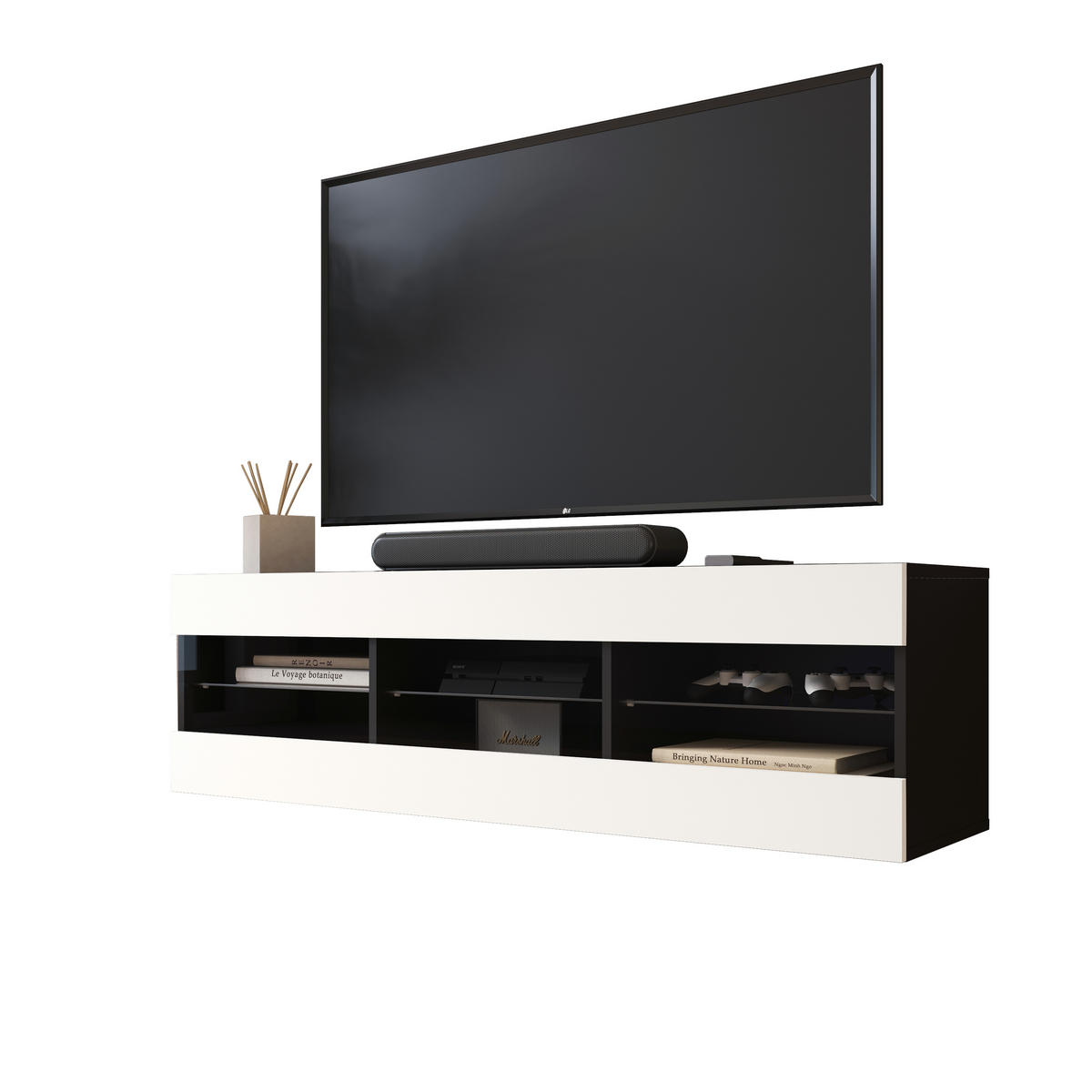 LOWBOARD TIVOLI RTV 140, Weiss - Schwarz/Weiß, Glas/Holzwerkstoff (140/40.5/35.5cm) - KomodeeKomodee