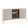 Ihre geräumige Konstruktion in kaschmirfarbener Optik wird durch dekorative Lamellen an der Front ergänzt, was dem Ganzen einen eleganten Charakter verleiht.