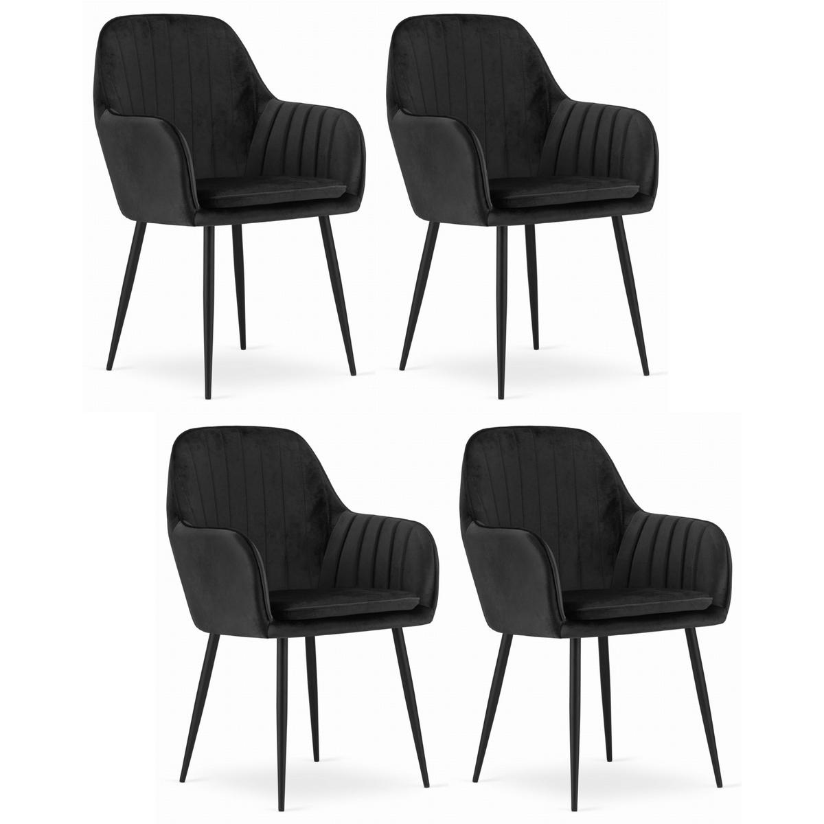 Komodee STUHL PRAIANO 4-er Set, Schwarz, Schwarz, mit Samtstoff gepolstert