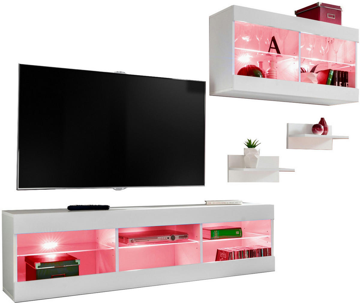 - PLATZ FÜR ALLES: Eines der Elemente ist der TV-Schrank, in dem ein Fernseher, ein Plattenspieler, Lautsprecher und andere Audiogeräte Platz finden. Es gibt auch Platz für Schallplatten oder CDs.