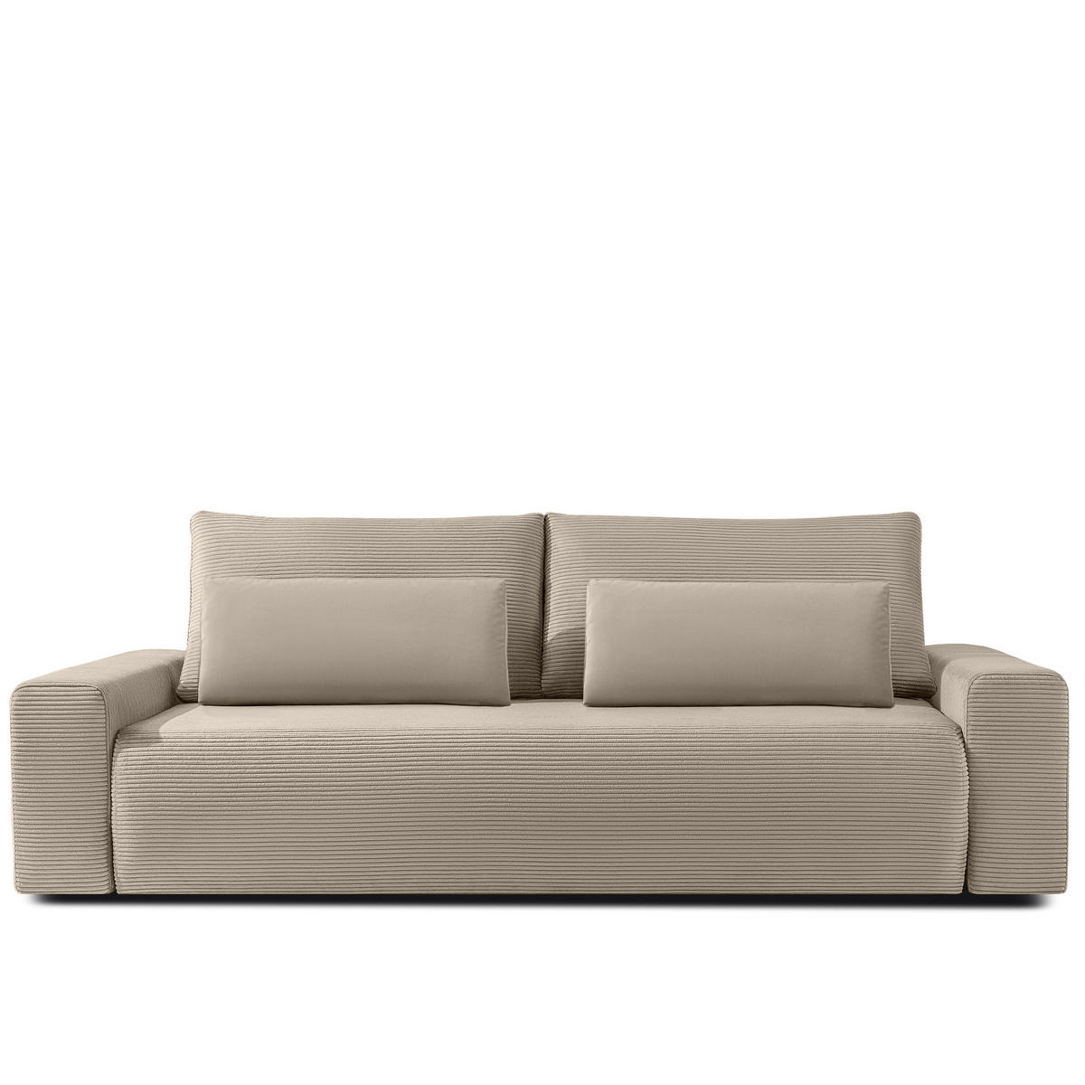 Im Lieferumfang enthalten sind zwei ergonomische Zierkissen, die weit mehr als nur dekorative Elemente darstellen. Durch ihre spezielle Füllung aus einer sorgfältig ausbalancierten Mischung von Granulat und Silikonkugeln bieten sie optimale Unterstützung für die Lendenwirbelsäule und sorgen für ein erhöhtes Sitzgefühl. Die innere Konstruktion des Sofas überzeugt mit Wellenfedern in Rückenlehne und Sitzfläche, die eine ergonomisch korrekte Haltung fördern und sowohl im Sitz- als auch im Liegemodus außergewöhnlichen Komfort garantieren.