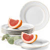 Die Porzellankollektion Maria Teresa ist eine Kombination aus Klassikern und zeitloser Eleganz, die in zwei einzigartigen Varianten erhältlich ist: weiß und handdekoriert mit einer zarten Linie aus echtem Gold. Jedes Geschirrteil ist aus hochwertigem Hartporzellan gefertigt, dessen subtile Dekore und edle Form den einzigartigen Charakter der Kollektion unterstreichen.