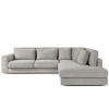 Abgerundet wird das Ganze durch zwei hochwertige Stoffe zur Auswahl – Chenille und Flechtstoff –, die in einer modischen Farbpalette erhältlich sind und sich durch eine hohe Abriebfestigkeit auszeichnen. Die solide Verarbeitung und die Liebe zum Detail zeugen von der Premium-Qualität des Produkts. Die Konstruktion ruht auf niedrigen, schwarzen Kunststofffüßen. Die Kollektion umfasst Ecksofas in rechter und linker Ausführung, die in Standardgröße und in der Variante XL erhältlich sind, um sich perfekt in jeden Raum einzufügen.