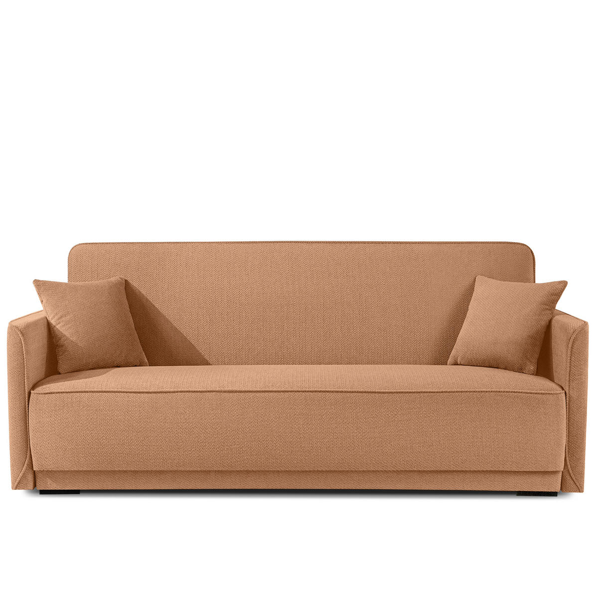 Besonders praktisch erweist sich der integrierte Stauraum für Bettwäsche und andere Textilien, der diskret im Inneren des Sofas verborgen ist und für Ordnung im Wohnbereich sorgt. Die vollständig gepolsterte Rückseite ermöglicht es, das Sofa flexibel im Raum zu positionieren, ohne dass unschöne Rückansichten sichtbar werden. Zwei dekorative Kissen mit Silikonkügelchenfüllung runden das Gesamtbild ab und sorgen für zusätzlichen Komfort beim Entspannen.