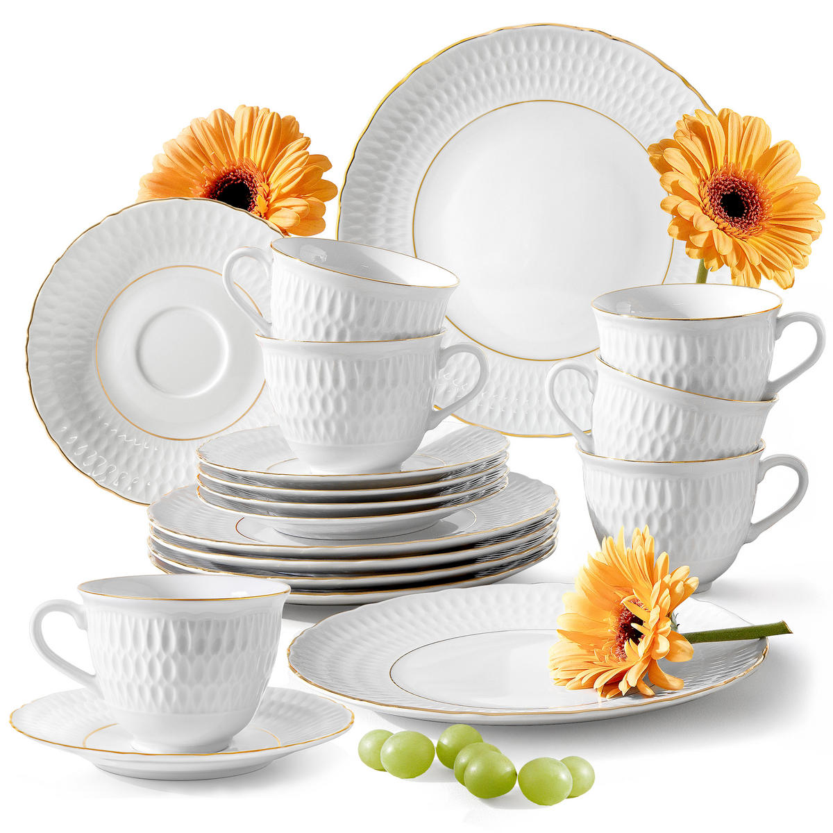 KONSIMO® KAFFEESERVICE 6 Personen CMIELOW SOFIA GOLDRAND 18-tlg aus Porzellan