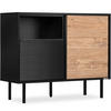 Die LOFTY-Kollektion ist das Werk angesehener Professoren, die sie so vielseitig und anpassungsfähig wie möglich gestaltet haben. Die Möbel sind mit verschiedenen Arten von Regaleinsätzen ausgestattet, die sich in Form und Farbe unterscheiden. Auch die LOFTY-Kollektion enttäuscht nicht, was die Verarbeitung angeht. Ausgewählte hochwertige Materialien sorgen für Stabilität und eine einzigartige Optik. Ebenso wichtig ist die Kombination aus schwarzem Laminat und eichenfarbenem Dekor, die perfekt zusammenpassen. Die Kollektion ist nicht nur für den rohen Industriestil, sondern auch für den wärmeren Loft-Stil geeignet. Der Loft RTV-Schrank in Eiche natur/schwarz ist in erster Linie ein Möbelstück für Nutzer, die Wert auf Details und hochwertige Verarbeitung legen. .