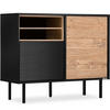 Die LOFTY-Kollektion ist das Werk angesehener Professoren, die sie so vielseitig und anpassungsfähig wie möglich gestaltet haben. Die Möbel sind mit verschiedenen Arten von Regaleinsätzen ausgestattet, die sich in Form und Farbe unterscheiden. Auch die LOFTY-Kollektion enttäuscht nicht, was die Verarbeitung angeht. Ausgewählte hochwertige Materialien sorgen für Stabilität und eine einzigartige Optik. Ebenso wichtig ist die Kombination aus schwarzem Laminat und eichenfarbenem Dekor, die perfekt zusammenpassen. Die Kollektion ist nicht nur für den rohen Industriestil, sondern auch für den wärmeren Loft-Stil geeignet. Der Loft RTV-Schrank in Eiche natur/schwarz ist in erster Linie ein Möbelstück für Nutzer, die Wert auf Details und hochwertige Verarbeitung legen. .
