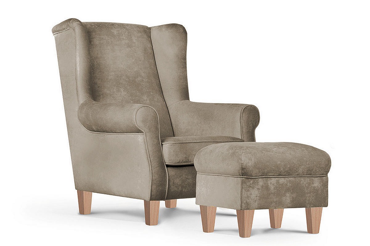 Der bequeme und schöne Ohrensessel MILES - mit integriertem oder separatem Hocker - im klassischen Stil ist ein Möbel für Menschen mit raffiniertem Geschmack, die Wert auf Funktionalität in der Inneneinrichtung legen. Das gesamte Möbelstück ist dank der Holzbeine aus Birke und Buche stabil. Die Polsterung ist leicht zu reinigen, was seine Funktionalität erhöht. Der mittelharte Sitz trägt zum Sitzkomfort und zur Effektivität der täglichen Entspannung bei. Er ist mit einer gewellten Feder und hochelastischem Schaumstoff ausgestattet. Außerdem sind die Armlehnen des Sessels mit dem Schaumstoff T2233 gepolstert. Ideal für die abendliche Lektüre oder zum Fernsehen, aber auch zum Entspannen zu Hause.