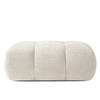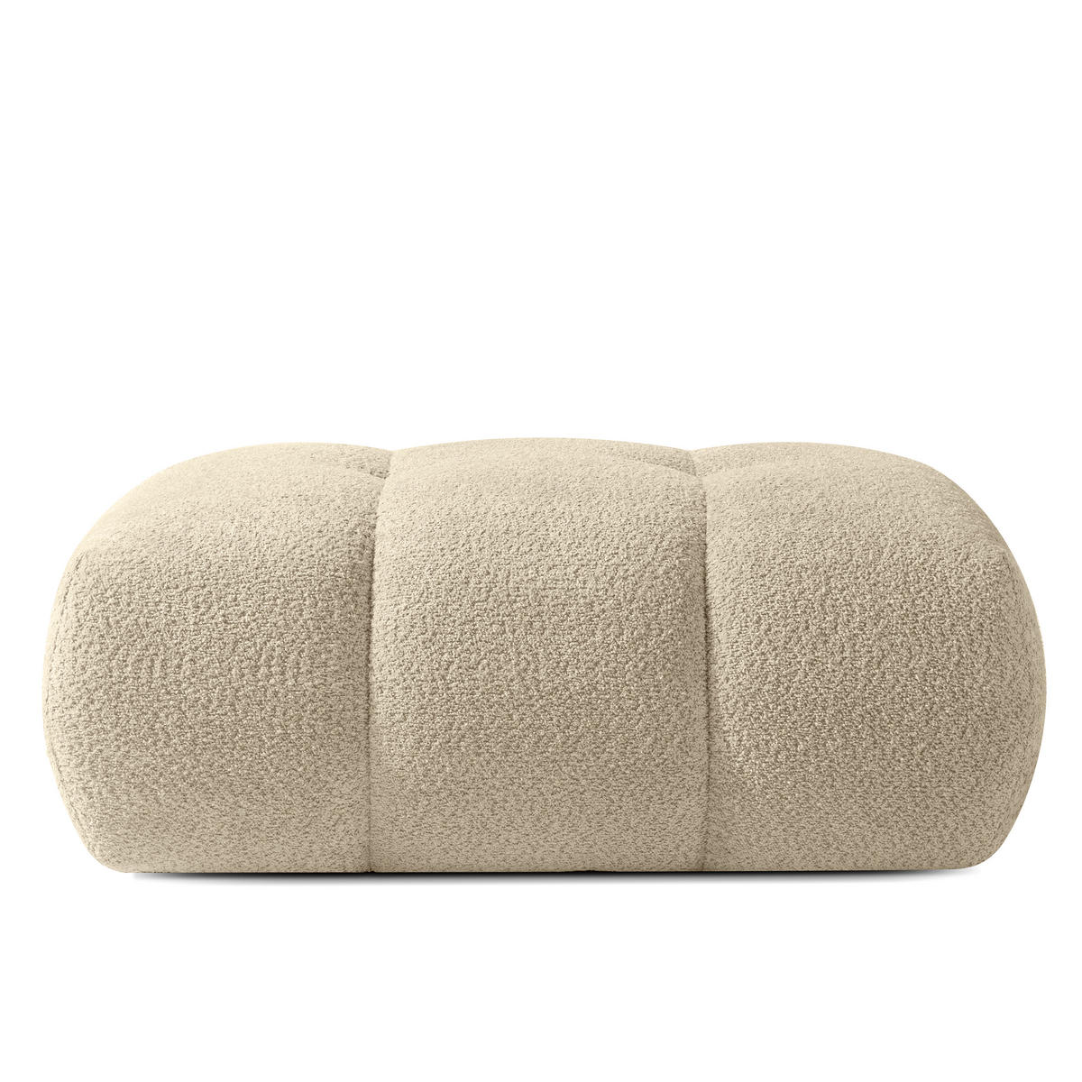 Das stabile Fundament bildet eine Rahmenkonstruktion aus erstklassigem Kiefer- und Buchenholz, ergänzt durch Span- und Sperrholzelemente. Die schwarzen Metallfüße mit 4,5 Zentimeter Höhe verleihen eine moderne, schwebende Optik. Ein besonderes gestalterisches Element sind die charakteristischen Steppnähte auf den Sitzflächen, die einen reizvollen Kontrast zur glatten Bouclé-Textur bilden und den Möbeln ihre unverwechselbare, edle Ausstrahlung verleihen.