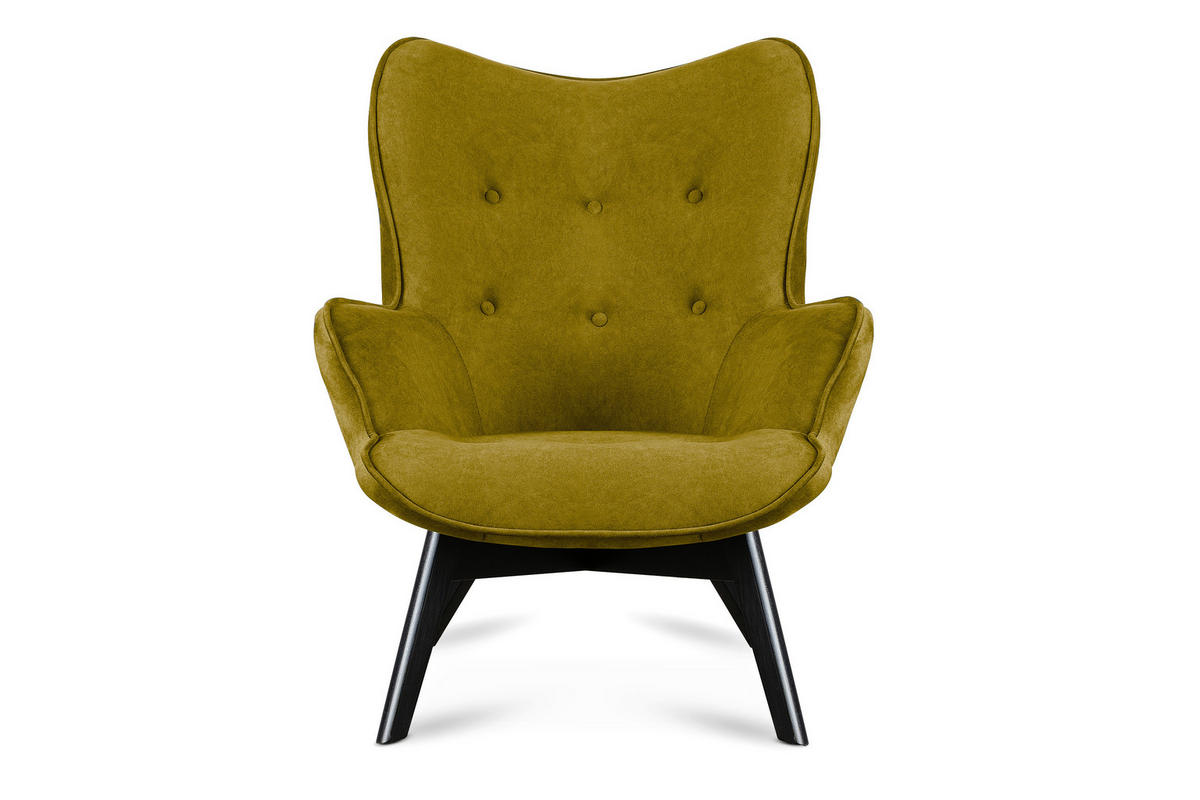 T30/38-Schaumstoff bietet optimale Unterstützung für Rücken und Lendenwirbelsäule, während die Beine aus Buchenholz in Schwarz lackiert sowohl Stabilität als auch Ästhetik gewährleisten.