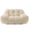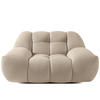 Die durchdachte Konstruktion orientiert sich an italienischen Designprinzipien mit charakteristisch niedriger Sitzhöhe, die durch subtile Innenneigung zum entspannten Verweilen einlädt. Die harmonisch geschwungenen Armstützen bieten optimalen Komfort und unterstreichen die fließenden Konturen. Besonders bemerkenswert ist die konsequente Umsetzung der „Bubble"-Ästhetik auch an der Rückenlehne, wodurch die Möbel zu skulpturalen Objekten werden.