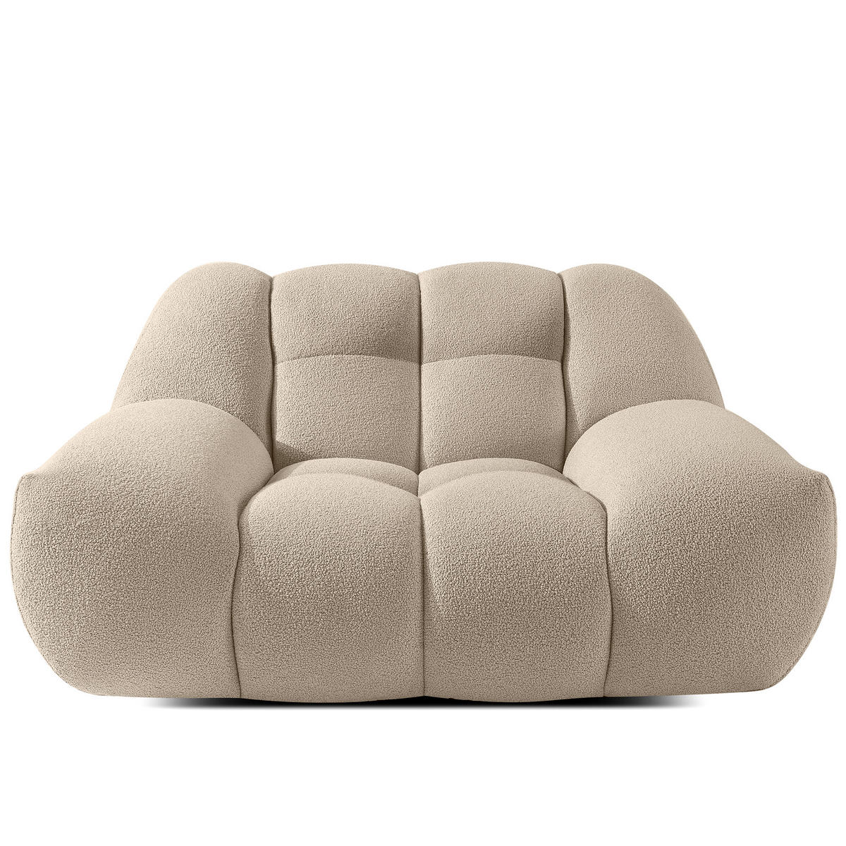 Den luxuriösen Charakter unterstreicht der edle Bouclé-Bezugsstoff mit integrierter hydrophober Technologie, der wasserabweisend ist und höchsten Funktionalitätsansprüchen genügt. Die außerordentliche Pillingresistenz und unkomplizierte Reinigung mit klarem Wasser sorgen für langanhaltende Schönheit.