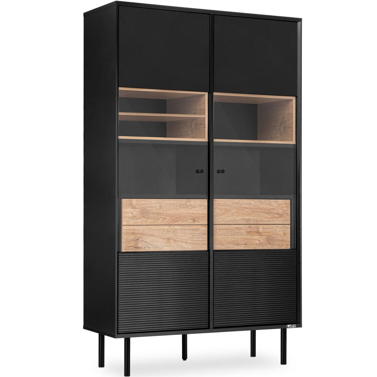 Die LOFTY-Kollektion ist das Werk angesehener Professoren, die sie so vielseitig und anpassungsfähig wie möglich gestaltet haben. Die Möbel sind mit verschiedenen Arten von Regaleinsätzen ausgestattet, die sich in Form und Farbe unterscheiden. Auch die LOFTY-Kollektion enttäuscht nicht, was die Verarbeitung angeht. Ausgewählte hochwertige Materialien sorgen für Stabilität und eine einzigartige Optik. Ebenso wichtig ist die Kombination aus schwarzem Laminat und eichenfarbenem Dekor, die perfekt zusammenpassen. Die Kollektion ist nicht nur für den rohen Industriestil, sondern auch für den wärmeren Loft-Stil geeignet. Der Loft RTV-Schrank in Eiche natur/schwarz ist in erster Linie ein Möbelstück für Nutzer, die Wert auf Details und hochwertige Verarbeitung legen. .