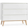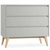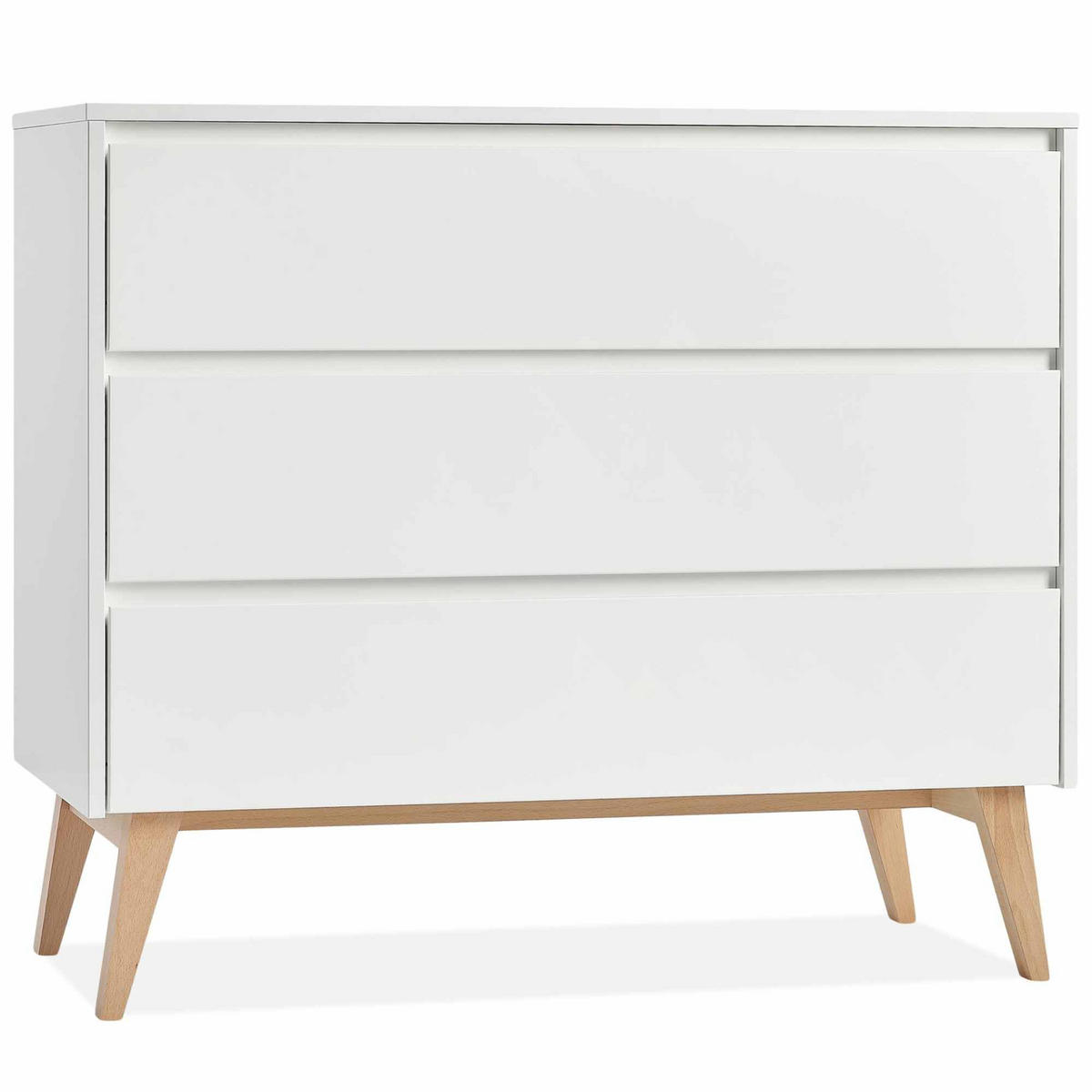 Die Kommode ist präzise aus lackiertem MDF, laminierten Spanplatten (Korpus und Innenteile) und massivem Buchenholz für die Beine gefertigt. Aus Sicherheitsgründen ist die Oberfläche der Kommode mit nicht brennbaren Lacken in zugelassenen Farben beschichtet. Darüber hinaus wurden bei der Herstellung nur Platten mit reduziertem Formaldehydgehalt verwendet.