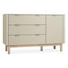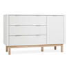 Die stilvolle Kommode ist sowohl mit reinen Schubladen als auch mit Schubladen und einer vergrößerten Version mit Türen erhältlich, die auf hochwertigen Laufschienen mit Bremse und Selbsteinzug laufen. Die größere Version der Kommode - mit Türen - ist sehr flexibel, die Türen können auf der linken oder rechten Seite angebracht werden. Der Innenraum bietet einen verstellbaren Einlegeboden.