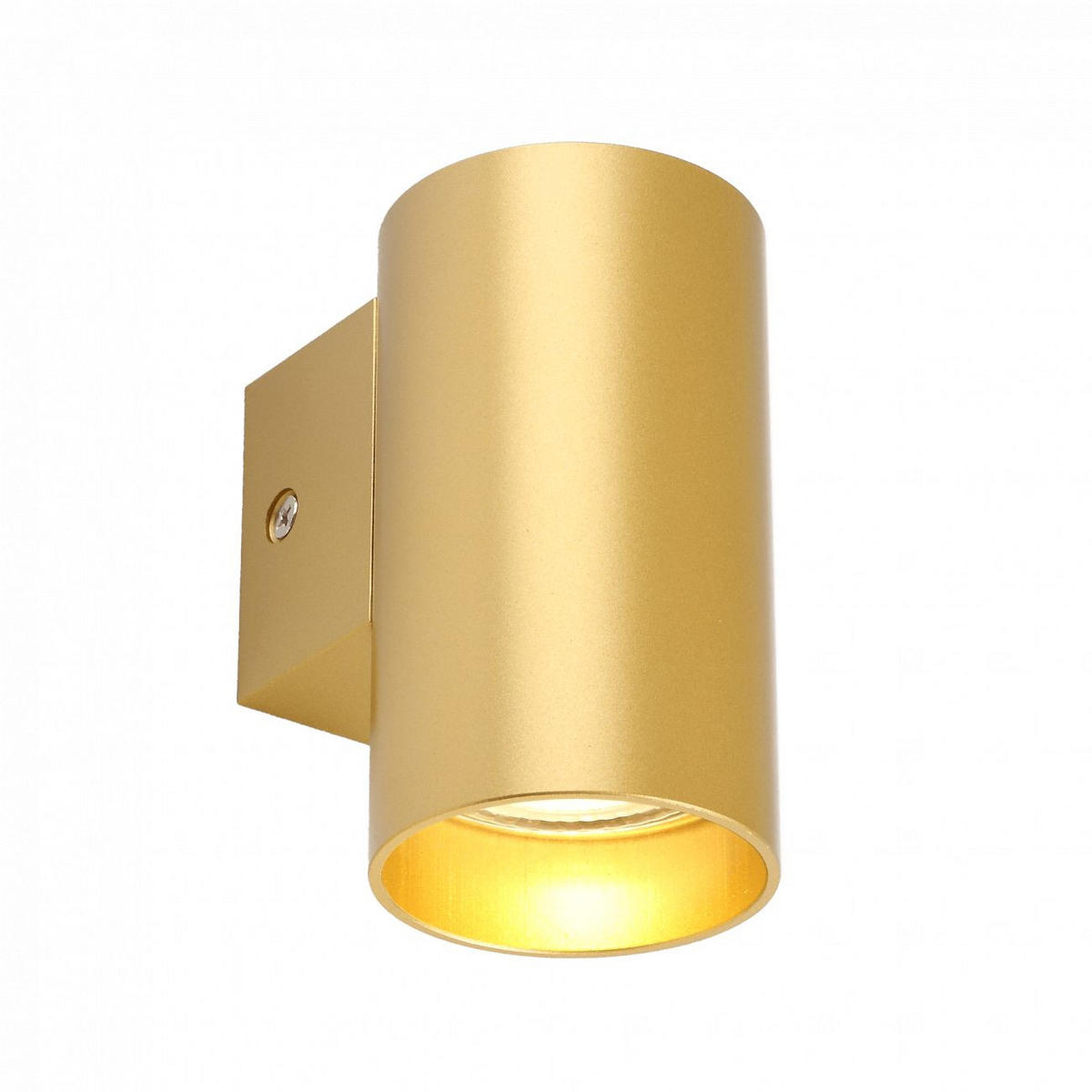Diese kleine, 10 cm hohe, zylindrische Wandleuchte ist aus Aluminium gefertigt. Der Lichtaustritt erfolgt nach unten. Sie muss mit einer Glühbirne mit GU10-Sockel bestückt werden. Aufgrund ihrer goldenen Farbe und ihrer sehr modernen Form schmückt sie die Wände, an denen sie angebracht ist. Sie können die Lampe zum Beispiel auch über dem Bett anbringen. (Sofort einsatzbereit)