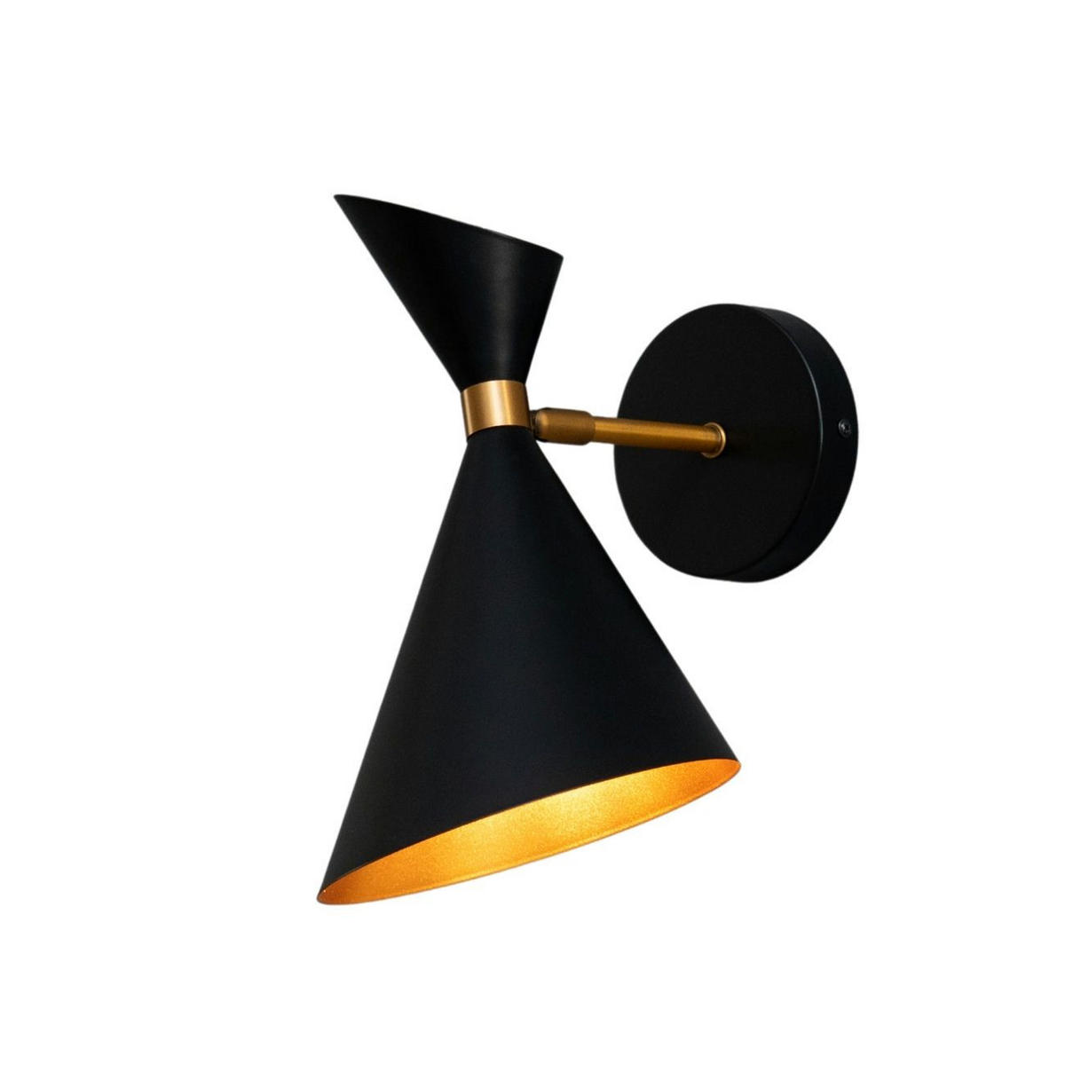 Moderne schwarze Wandleuchte: Valdivia. Er misst 26 cm im Durchmesser und ist 40 cm hoch. Durch ihre ursprüngliche Kegelform ist es möglich, die Lichtquelle nicht direkt zu sehen, sondern nur ihr angenehmes Licht in Ihrem Zimmer diffundieren zu lassen! vervollständigen Sie sie mit einer Glühbirne mit E27-Sockel. Für eine sparsame Beleuchtung sollten Sie sich für LEDs entscheiden. Die Außenseite ist schwarz und die Innenseite goldfarben, was einen schönen Kontrast und ein schönes Licht- und Schattenspiel erzeugt. (Sofort einsatzbereit)