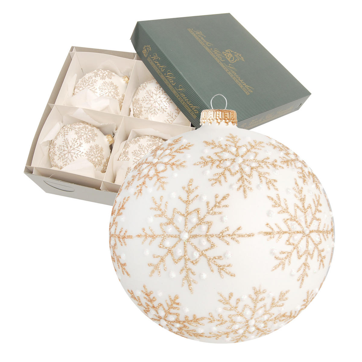 Krebs Glas Lauscha CHRISTBAUMKUGELN Schneeflocke Rachel Weiß 10cm (Glas / 4 Stk.)