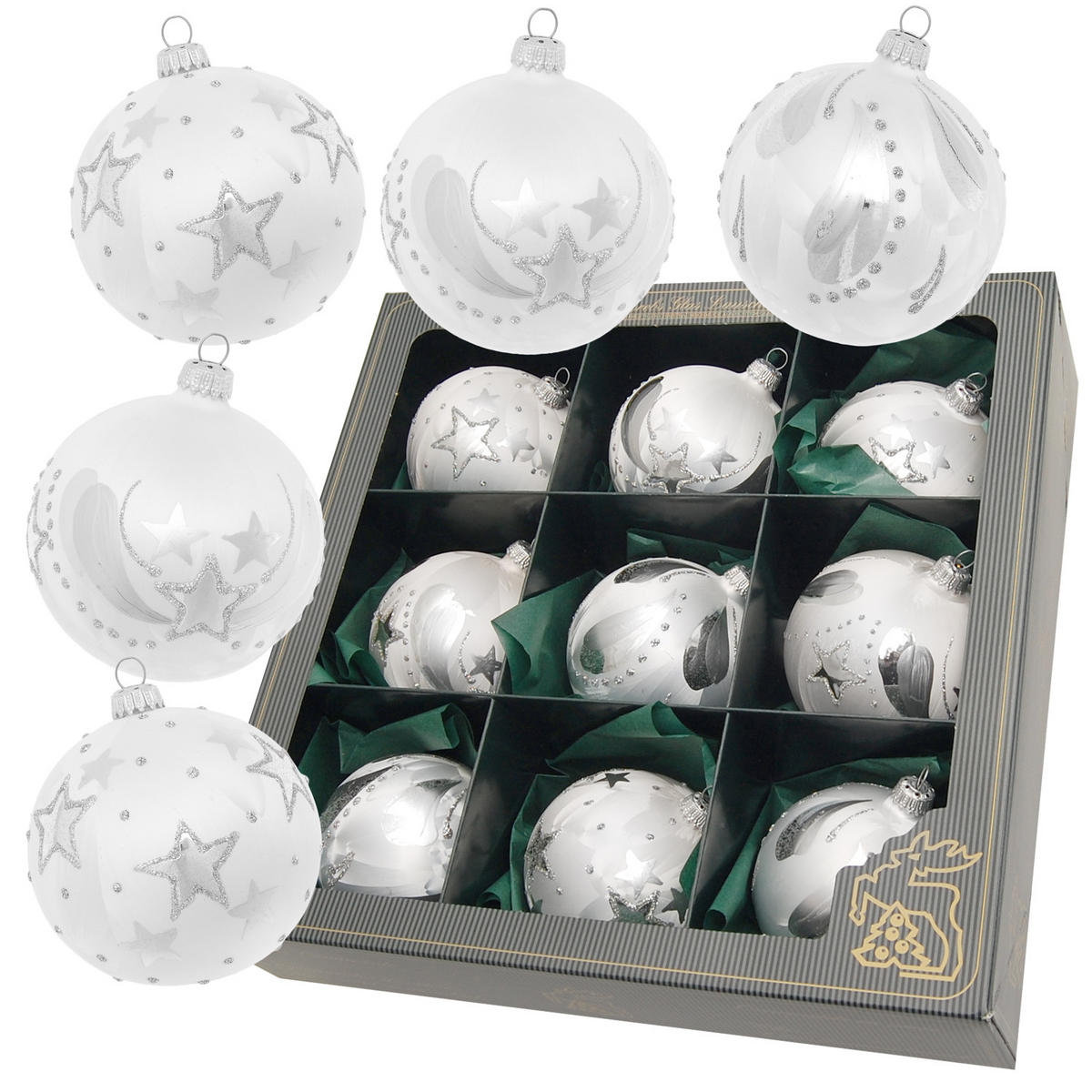 Krebs Glas Lauscha CHRISTBAUMKUGELN Set Winterzauber Silberfarbig 8cm (Glas / 9 Stk.)