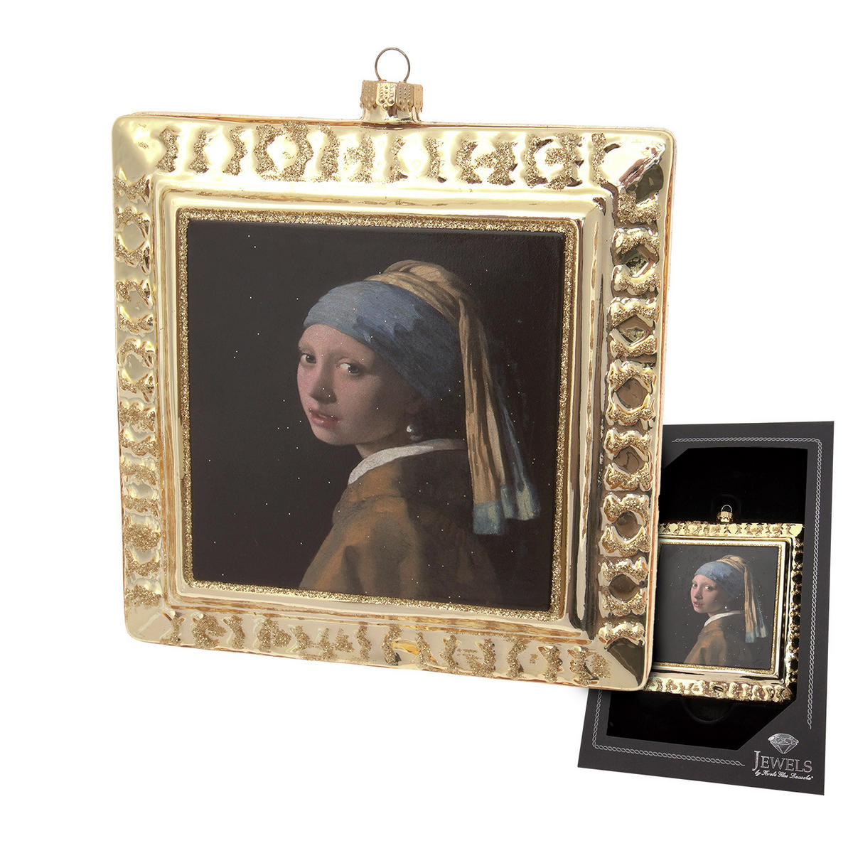 CHRISTBAUMSCHMUCK Das Mädchen mit dem Perlenohrring Goldfarbig 12cm (Glas / 1 Stk.) - Goldfarben, Glas (12/12/3cm) - Krebs Glas LauschaKrebs Glas Lauscha